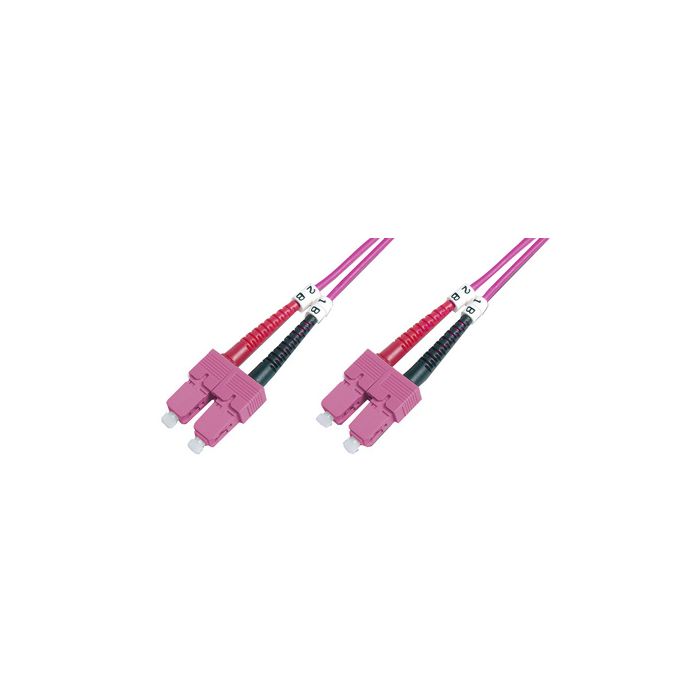 DIGITUS Câble Patch à fibres optiques, SC-Duplex - SC DuplexOM4, 5,0 m, multimode, câble duplex, 50/125 microns, férule en céramique, type de câble: I-VJH 2G, 2 fibres, couleur de câble: violet bruyère (RAL4003) (DK-2522-02-4)