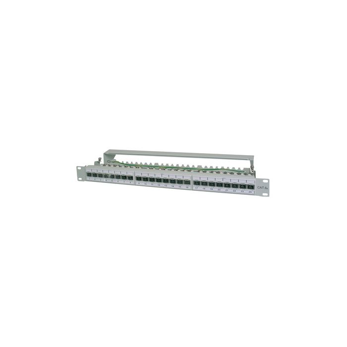 DIGITUS Panneau 19", cat.6A (profond), 25 x ports RJ45, 1 U ports RJ45 entièrement blindés, technique de connexion LSA, boîtier en tôle d'acier entièrement blindé, adapté pour 10 GBit Ethernet, couvercle de protection contre la poussière intégré, couleur: gris clair (RAL 7035) (DN-91624S-EA / ancien: DN-91624S-A)