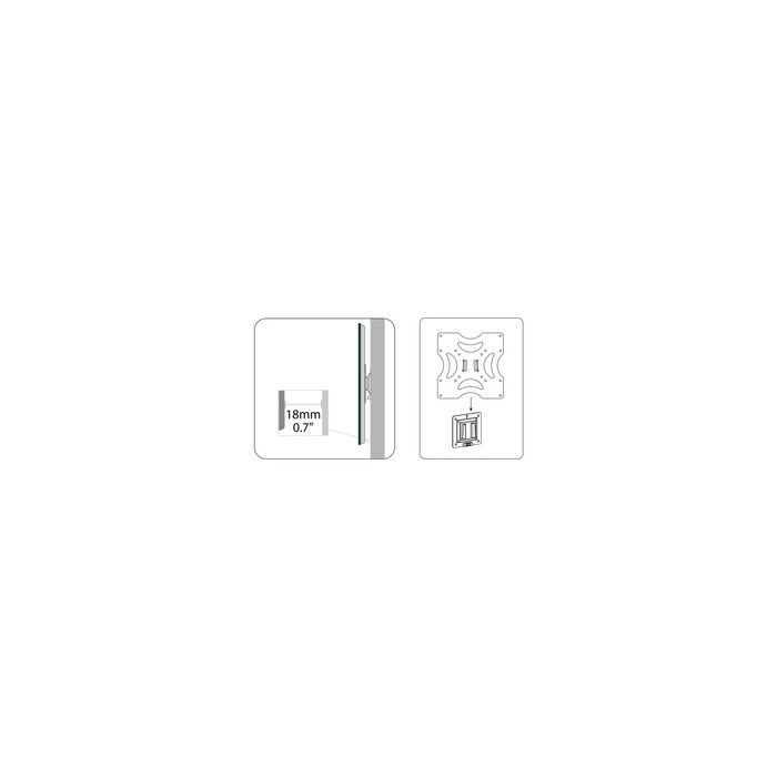 DIGITUS Support mural pour écran, max. VESA 200 x 200 mm adapté pour les moniteurs jusqu'à 93,98 cm (37"), capacité de charge: 37 kg, VESA Standard: 75x75 / 100x100 / 200x100 /200x200 mm, écart au mur: 18 mm, poids: 0,7 kg, avec niveau à bulle intégré, dimensions: (L)220 x (P)18 x (H)220 mm (DA-90310-1)