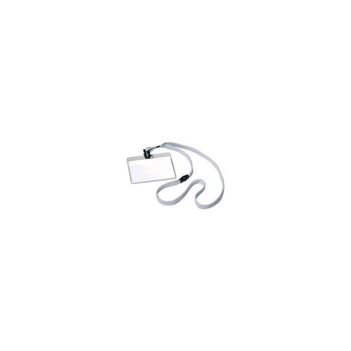 DURABLE Badge, avec lacet textile, 90 x 60 mm, gris en plastique rigide transparent, lacet textile de 10 mm de largeur, lacet avec fermeture de sécurité, ouvert sur le haut, 1 bristol blanc pour chaque badge incl. contenu: 10 badges (8139-10)
