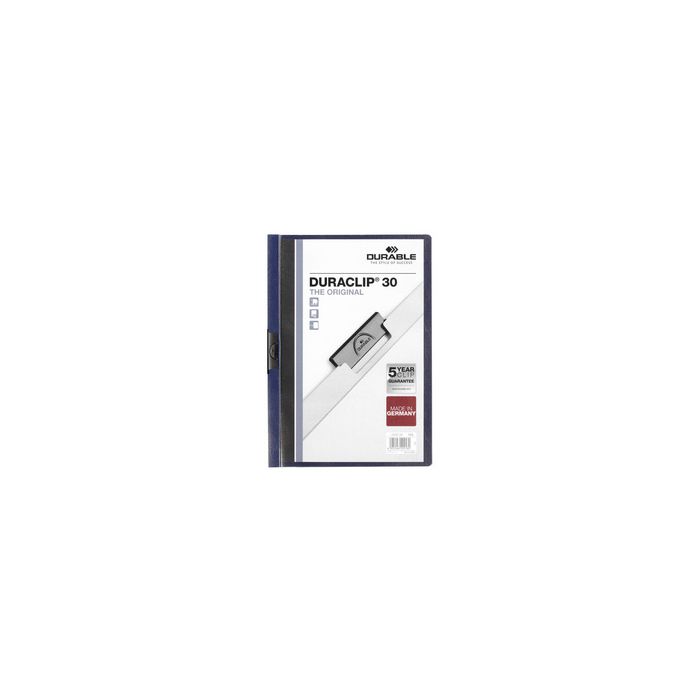 DURABLE Chemise à clip DURACLIP ORIGINAL 30, A4, bleu nuit, couverture avant transparente, avec clip en métal capacité: 30 feuilles (2200-28)