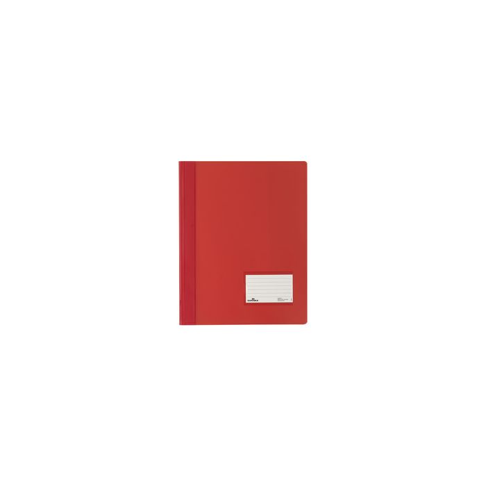DURABLE Chemise à lamelle DURALUX, A4, rouge translucide PVC, extra large, film translucide, couverture avant avec porte-étiquette au format d'une carte de visite (90 x 57 mm), pochette intérieure transparente sur le dos (2680-03)