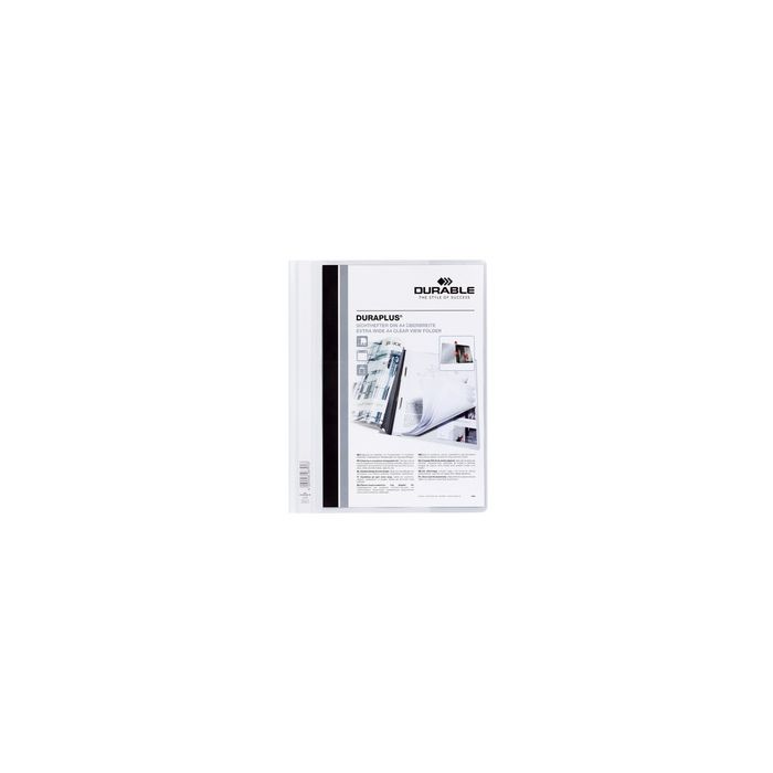 DURABLE Chemise à lamelle DURAPLUS, A4, blanc extra large, couverture avant transparente avec une poche transparente au format A4, couverture arrière avec une pocheinterne transparente, porte-étiquette sur toute la hauteur (2579-02) Chemise pour offres