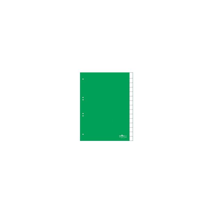 DURABLE Intercalaires en plastique, PP, 15 touches A4 en hauteur pleine, plastique rigide, perforation universelle, blanc, avec onglets soudés, vert, épaisseur: 0,12 mm (6222-05)