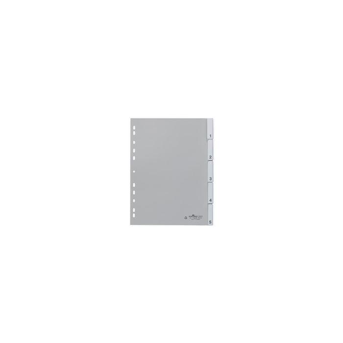DURABLE Intercalaires en plastique, PP, épaisseur: 0,12 mm 5 pièces, hauteur complète, perforation universelle, format A4, gris, aves des onglets soudés (6440-10)