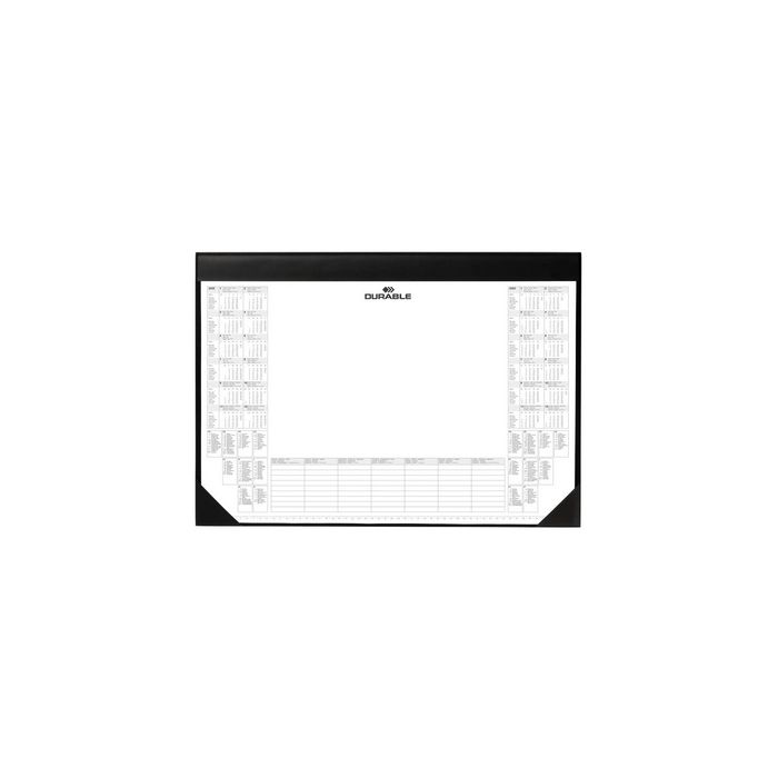 DURABLE Sous-main avec bloc de calendrier, noir avec calendrier imprimé sur 2 ans, les jours fériés internationaux et programmes hebdomadaire, collé en haut, dimensions: (L)590 x (P)420 mm (7291-01)