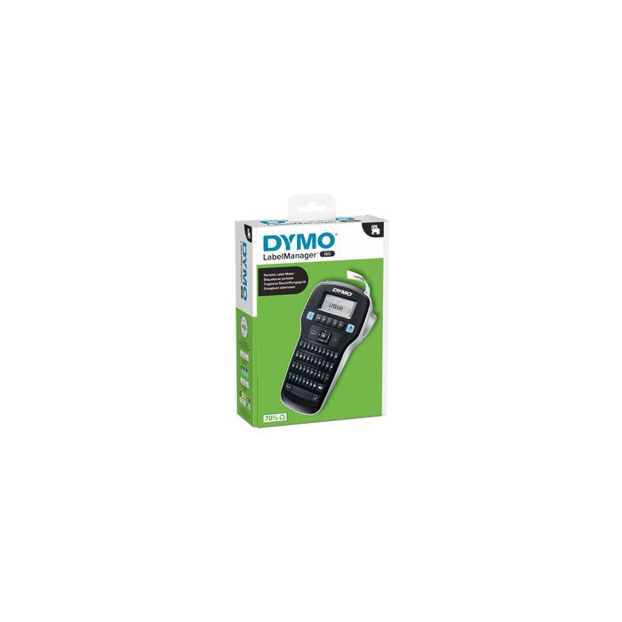 DYMO Etiqueteuse manuelle "LabelManager 160" imprime 2 li- gnes par étiquette, impression verticale ou horizontale, impression d'étiquettes, coupe manuelle de bande, 8 styles d'écriture, 6 épaisseurs d'écriture, 5 cadres et souligna- ges, affichage LCD, clavier QUERTZ, incl. bande starter D1 (S0946360 / 2174611) pour bandes D1 avec 6, 9 et 12 mm de largeur