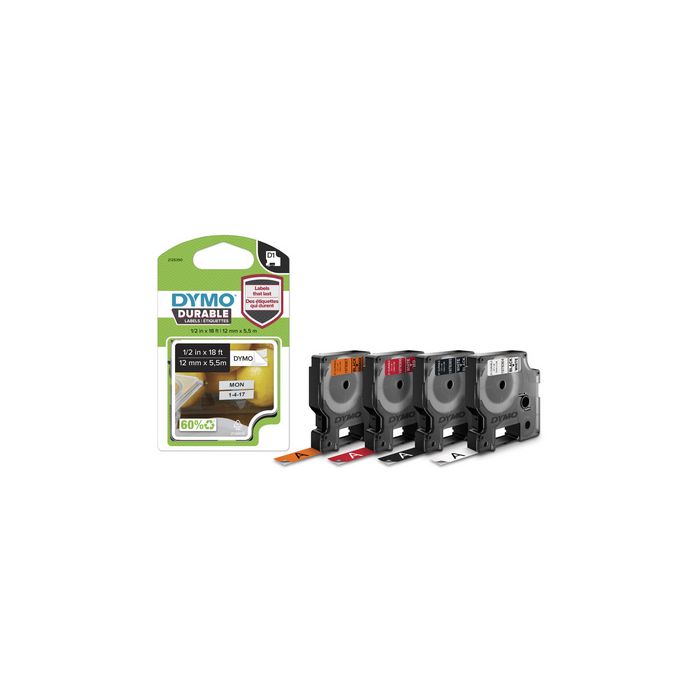 DYMO Ruban d'étiquette D1 blanc/noir, 12 mm x 3 m en vinyle, résistet aux rayons uv, à l'eau, aux températuresde -40 jusqu'à +80 degrés, résiste à l'huile, solide contre les produits chimiques, couleur d'écriture: blanc, couleur du ruban: noir, etiquettes High Performance (1978365) pour DYMO POCKET/1000 PLUS/2000/3500/4500/5500 LabelManager PC/100/100 PLUS/150/160/200/260P/300/400/450 Labelpoint 100/150/200/250/300/350/450