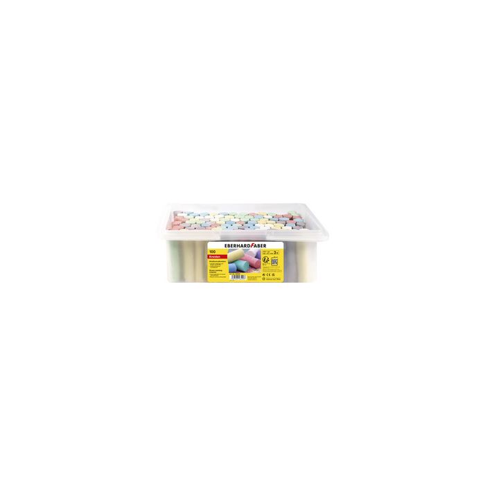 EBERHARD FABER Craie de trottoir, seau en plastique de 100 rond, couleurs éclatantes, facilement lavable à l'eau, assorti en 12x blanc, 12x jaune, 12x vert, 12x rouge, 12x lilas, 12x rouge beige, 14x bleu, 14x rose contenu: 50 pièces (526599)
