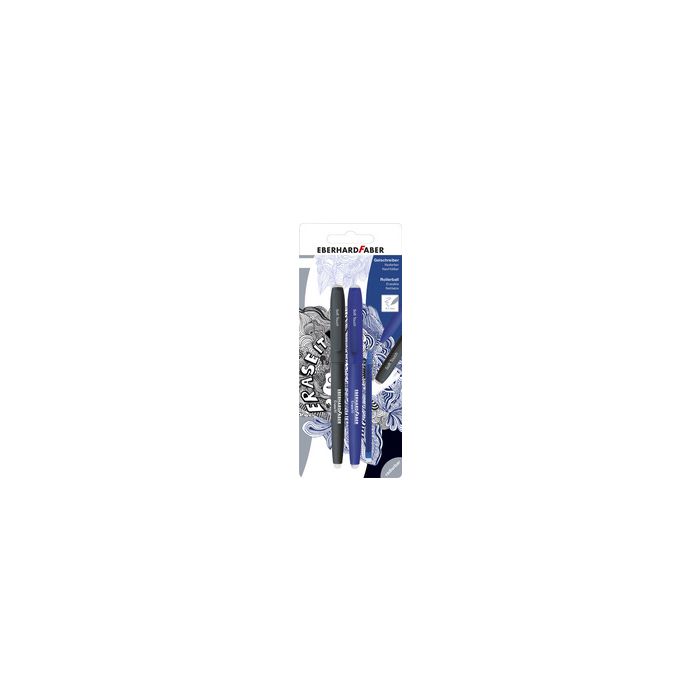 EBERHARD FABER Stylo encre gel Erase it!, KIT PROMO largeur de tracé: 0,7 mm, capuchon amovible, sur carte blister, la pointe plastique à l'extrémité du corps permet d'effacer ce qui a été écrit contenu: 2x stylo encre gel (bleu/noir) + recharge en bleu (582103)