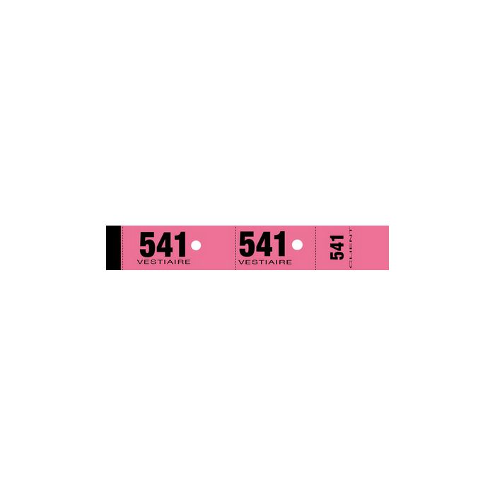 ELVE Bloc vestiaire, 50 feuillets de 3 coupons, rouge coupons détachables micro-perforés, 2 coupons avec trou de 6 mm, numéros de 3 chiffres imprimés sur chaque coupon de 1 à 1000 (série de 20 blocs), dimensions: (L)200 x (H)30 mm en paquet de 20 blocs (266) carte 160 g/m2, dessous carton gris, ruban noir