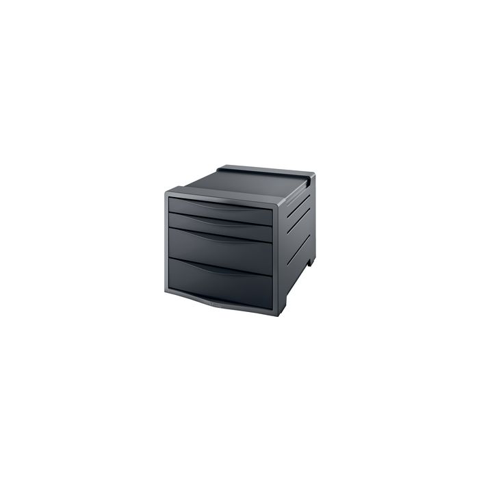 Esselte Module de classement Europost, 4 tiroirs, gris /noiren Polystyrène, empilable, avec poignée pour une ouverture facile, dimensions: (L)290 x (P)370 x (H)245 mm (623761) hauteur d'1 tiroir: 50 mm