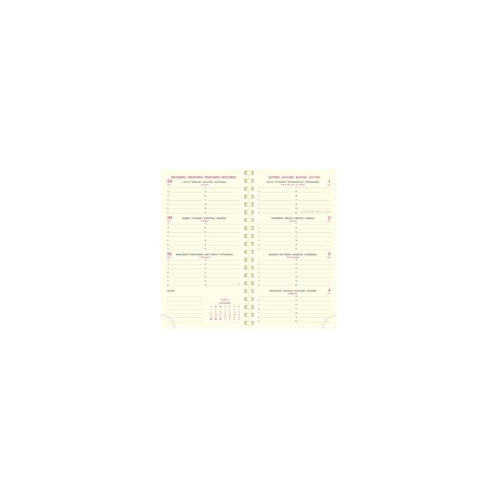 - Calendrier: 1 semaine sur 2 pages, 7 jours complets