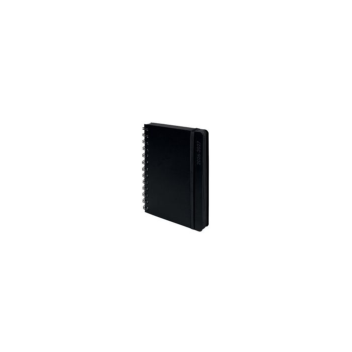 - Finition: reliure spirale métal, élastique de fermeture, tranche colorée en noir