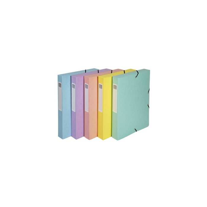 EXACOMPTA Boîte de classement Aquarel, A4, 40 mm, assorti en carton Colorspan 600 g/m2, avec élastique, étiquette de dos collée, largeur dos : 40 mm, dimensions : (L)250 x (H)330 mm en paquet de 8 pièces (59560E) assorti dans les couleurs rouge corail, mauve, bleu pastel, vert pastel et citron