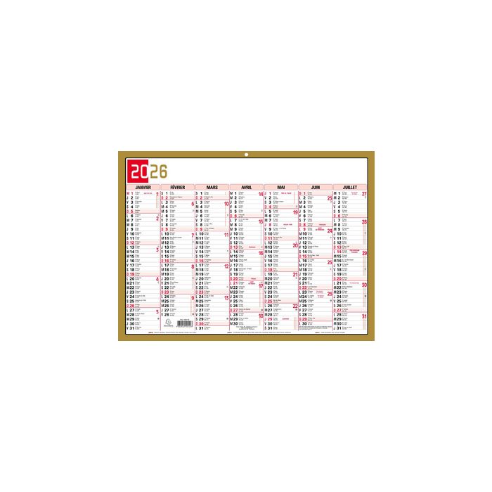 EXACOMPTA Calendrier tricolore neutre, 295 x 220 mm, 2026 -------------------- Pour le Marché: F ---------------------14 mois, de Janvier à Juillet (recto) et de Juillet à Janvier (verso), imprimé noir et rouge, bordure or (34311E)
