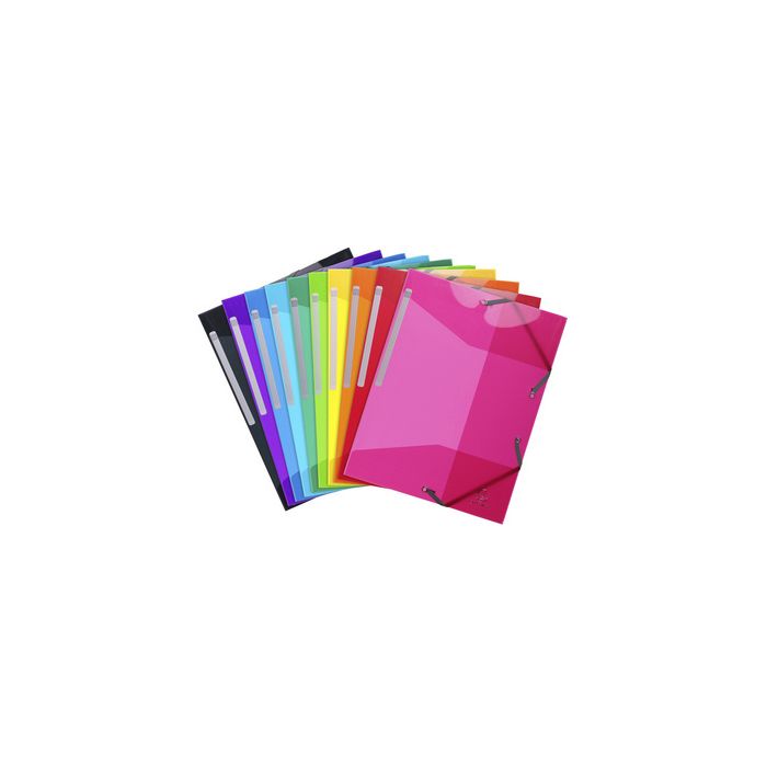EXACOMPTA Chemise à élastique Iderama, PP, A4, assorti en polypropylène semi-translucide 0,5 mm, avec 3 rabats et élastique de fermeture, avec étiquette de dos inscriptible, dimensions: (L)240 x (H)320 mm, en paquet de 10 pièces (55670E) assorti dans les couleurs: bleu clair, bleu foncé, jaune, noir, orange, rose, rouge, vert foncé, vert anis, violet