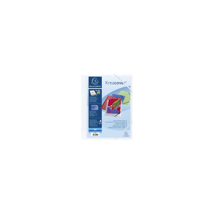 EXACOMPTA Chemise à élastiques Kreacover, A4, PP, blanc en polypropylène opaque 0,5 mm, avec 3 rabats et fermeture à élastique, pochette transparente à l'avant, dimensions: (L)240 x (H)320 mm (55992E)