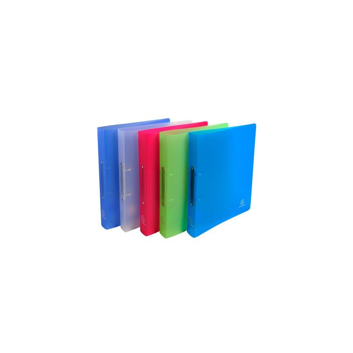 EXACOMPTA Classeur Chromaline, 2 anneaux, A4, assorti en PP semi-rigide translucide 0,7 mm, anneaux ronds en O, largeur du dos: 40 mm, diamètre de l'anneau: 30 mm, diemensions: (L)268 x (H)320 mm en paquet de 10 pièces (54369E) assorti dans les couleurs: bleu, incolore, rouge, vert et turquoise