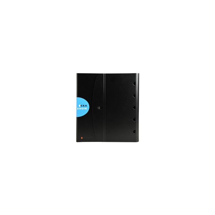 EXACOMPTA Classeur de présentation EXASHOW, A4 horizontal,PPnoir, avec 25 pochettes perforées et système de chevalet, mécanique 4 anneaux ronds, diamètre anneau: 30 mm, largeur du dos: 40 mm, incl. 5 intercalaires, 1 planche d'étiquettesd'identification, dimensions: (L)320 x (H)295 mm (56034E) EXACTIVE