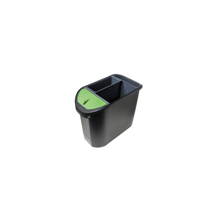 EXACOMPTA Corbeille à papier TOPLINE, 26 litres, noir/ anthracite, ovale, en PP, avec poignées pratiques, hauteur: 365 mm, clips de fixation inclus pour maintenir le sac poubelle bien en place, 3 compartiments (42614D)