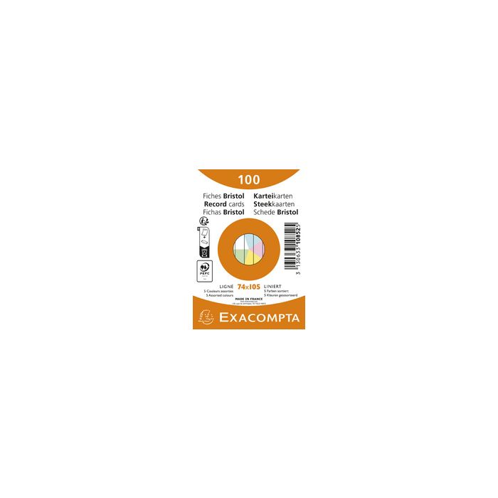 EXACOMPTA Fiches bristol, A7, ligné, rose dimensions: (L)74 x (H)105 mm, 205 g/m2, blanchi au ph-neutre, lignes à l'hoizontale contenu: 100 fiches bristol sous film (10830SE)