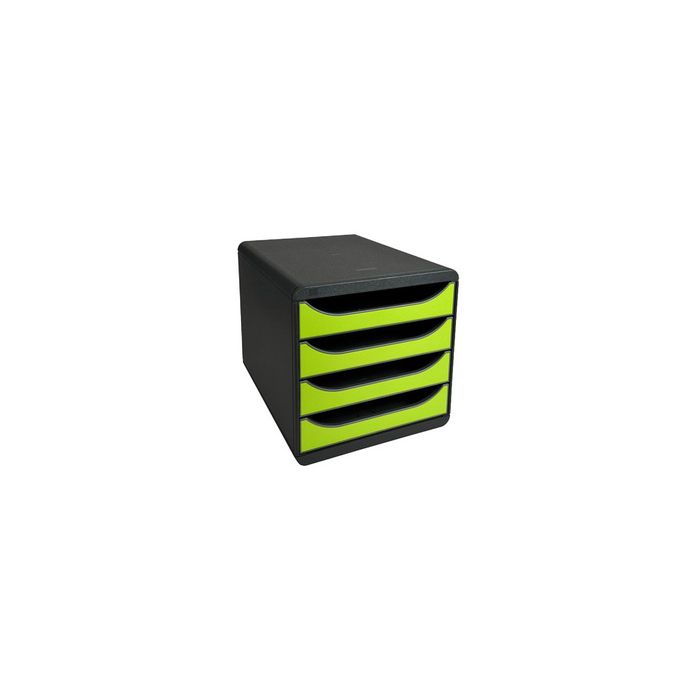 EXACOMPTA Module de classement BIG-BOX, 4 tiroirs, vert aniscorps en polystyrène, pour format A4+, tiroir ouvert avec butée de sécurité, hauteur des tiroirs: 55 mm, dimensions: (L)278 x (P)347 x (H)267 mm corps: noir, tiroirs: vert anis (310725D)