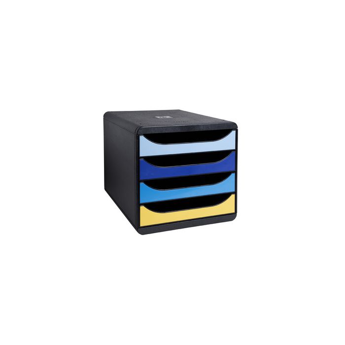 EXACOMPTA Module de classement BIG-BOX Bee Blue 4 tiroirs, corps en polystyrène, pour format A4+, tiroirs avec butée de sécurité, hauteur des tiroirs: 55 mm, dimensions: (L)278 x (P)347 x (H)267 mm corps: noir, tiroirs: coloré (3104202D)