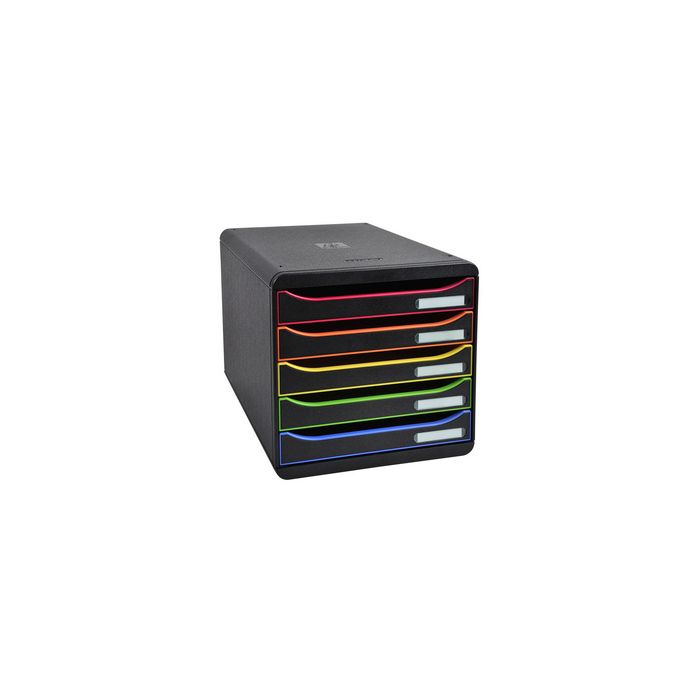 EXACOMPTA Module de classement BIG-BOX PLUS, 5 tiroirs, arlequin, boîtier polystyrène, format A4+, tiroirs ouverts butée de sécurité, hauteur de tiroir: 43 mm, avec étiquetteset porte-étiquette, dimensions: (L)278 x (P)347 x (H)271 mm boîtier: noir, tiroirs: noir avec bord de couleur (309914D)