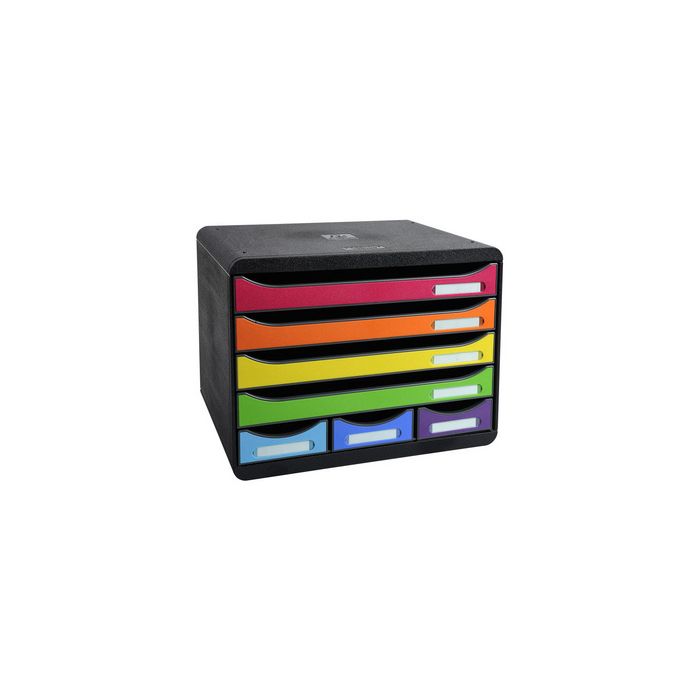 EXACOMPTA Module de classement STORE-BOX MINI, 7 tiroirs arlequin, corps polystyrène, pour format A4+, tiroirs ouvertavec butée de sécurité, 4 tiroirs 43 mm de haut, 3 tiroirs pour petits ustensiles de bureau dimensions: (L)355 x (P)270 x (H)271 mm (307798D)