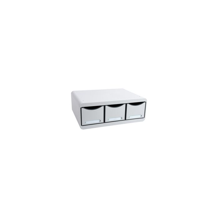 EXACOMPTA Module de classement TOOLBOX MAXI, 3 tiroirs, grisclair, boîtier en polystyrène, boîte de rangement et de classement avec 3 tiroirs étroits mais hauts pour petits articles de bureau, dimensions: (L)355 x (T)270 x (H)135 mm avec porte-étiquette, boîtier: gris clair, tiroir:gris clair(318740D)