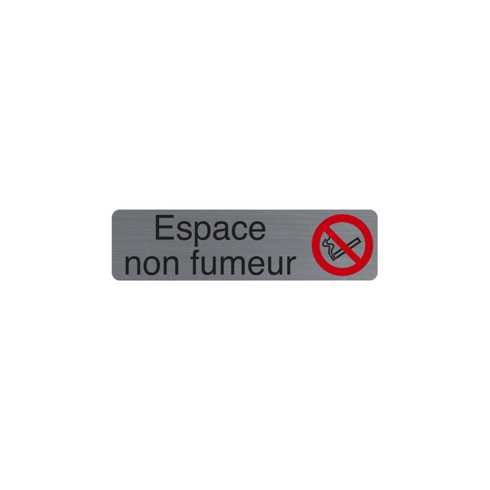 EXACOMPTA Plaque de signalisation "Espace non fumeurs" matériau support de 0,8 mm d'épaisseur à l'aspect aluminium brossé, auto-adhésif, format: 165 x 44 mm (67174E)