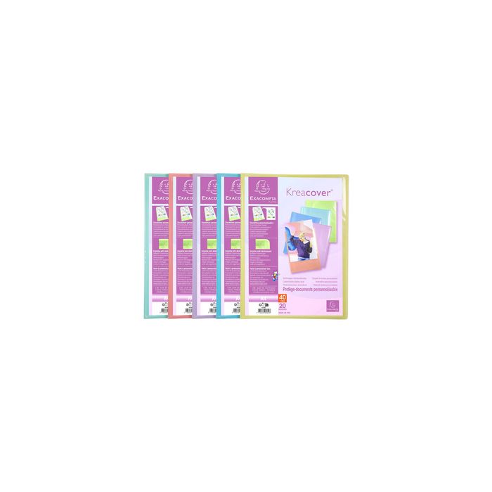 EXACOMPTA Protège-documents, A4, PP, 40 pochettes, assorti couverture rigide et opaque, dimensions: (L)240 x (H)320 mm,incl. 40 pochettes en paquet de 10 (5849E) assorti dans les couleurs: bleu pastel, rouge corail, jaune pastel, lilas pastel et vert pastel