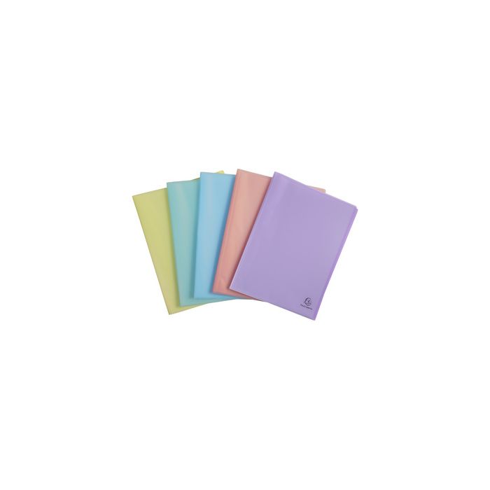 EXACOMPTA Protège-documents Chromaline Pastel, 50 pochettes couverture polypro semi-rigide translucide, pochettes cristal lisse haute transparence, 100 vues, assorti en bleu pastel, corail, jaune, mauve, vert pastel en paquet de 10 pièces (88570E) dimensions: 240 x 320 mm pour format A4
