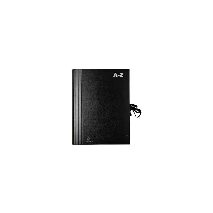 EXACOMPTA Trieur accordéon A-Z, pour format A4, noir trieur avec 20 compartiments, compartiments imprimés de A-Z,avec un dos extensible et un ruban pour la fermeture, extérieur en carton pelliculé PVC/PU, intérieur en carte recyclés gris 250 g/m2, dimensions: (L)340 x (H)385 mm (61550B)