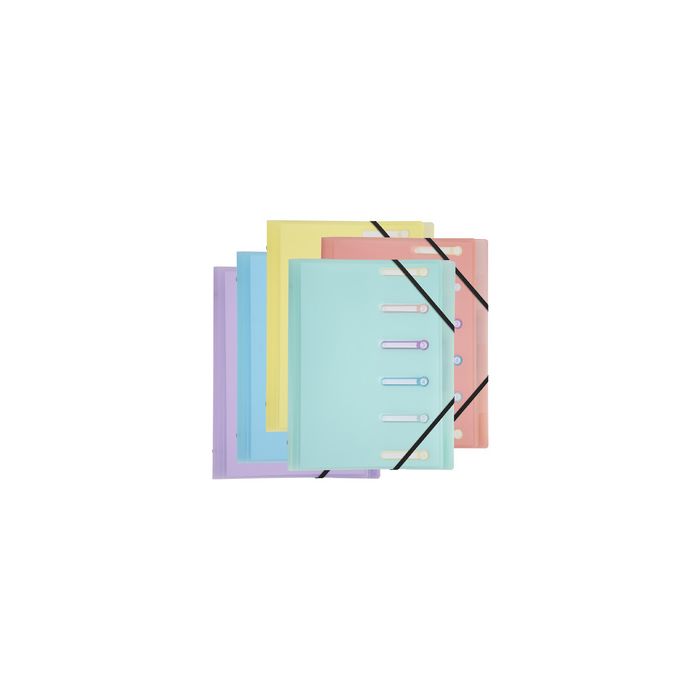 EXACOMPTA Trieur Chromaline, A4, 6 compartiments, assorti couverture en PP recyclé, épaisseur: 500 microns, 3 rabats, pochette transparente à l'intérieur, dimensions: (L)240 x (H)320 mm, élastique de fermeture en paquet de 10 pièces (56170E) assorti dans les couleurs pastel: bleu, rouge corail, jaune,lilas et vert