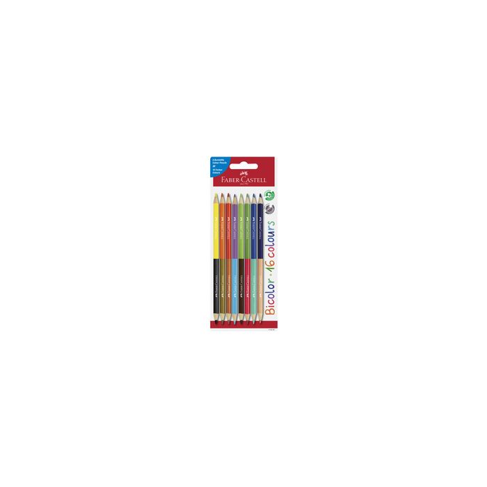 FABER-CASTELL Crayons de couleur Bicolor, carte blister de 8corps rond, 8 crayons de couleur avec 16 couleurs, mine incassable, épaisseur de la mine: 3,8 mm contenu: 8 crayons de couleur (116197)