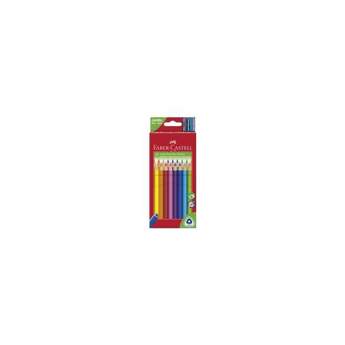 FABER-CASTELL Crayons de couleur Jumbo triangulaire, 20 étuien carton, triangulaire, vernis à base d'eau, longueur: 175 mm, mine incassable grâce à une colle spéciale taille crayon incl. contenu: 20 pièces (116520)