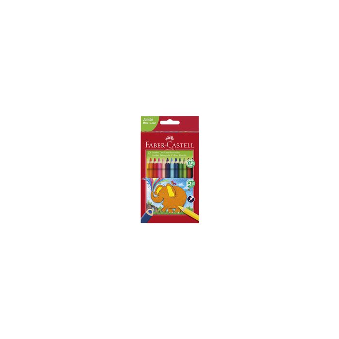 FABER-CASTELL Crayons de couleur triangulaire Jumbo, étui 12triangulaire, longueur: 175 mm, laqué en couleur, mine résistante grâce à la colle spéciale, épaisseur de la mine: 5,4 mm, application de couleur douce, couleurs vives, contenu: 12 crayons (116501)