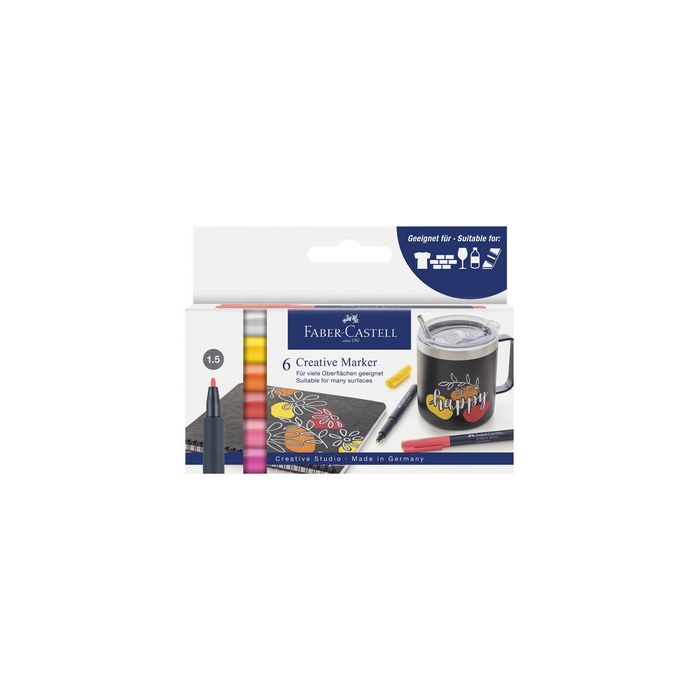 FABER-CASTELL Creative Marker, étui de 6 "Summer breeze" encre à base d'eau, sans odeur, indélébile et résistant aux éclaboussures, ne traverse pas le papier, pour le papier, le carton, le verre, le plastique, le métal, la pierre etc. largeur de tracé: 1,5 mm (160705)