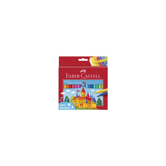 FABER-CASTELL Feutre CASTLE, étui carton de 36 encre à base d'eau, capuchon ventilé, lavable sur la plupartdes tissus, largeur de tracé: 3,0 mm contenu: 36 feutres (554203)