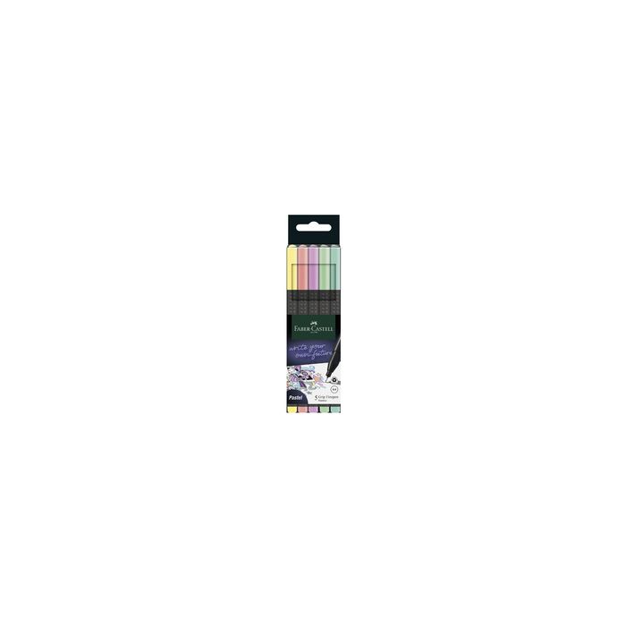 FABER-CASTELL Feutre pointe fine GRIP FINEPEN, étui de 5 largeur de tracé: 0,4 mm, surface à picots pour une bonne prise en main, lavable sur les tissus, convient aux règles et gabarits, contenu: 5 fineliners (151602) assorti dans les couleurs pastel jaune, rouge, violet, vert et bleu