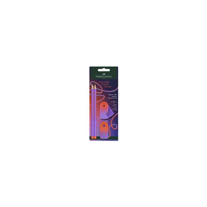 FABER-CASTELL Kit d'écriture GRIP Flow Edition, punchy meloncontenu: 2x crayon GRIP FLOW EDITION degré de dureté B, 1x gomme SLEEVE Mini, 1x taille-crayon SLEEVE Mini, sur carte blister (117019) Follow your Flow