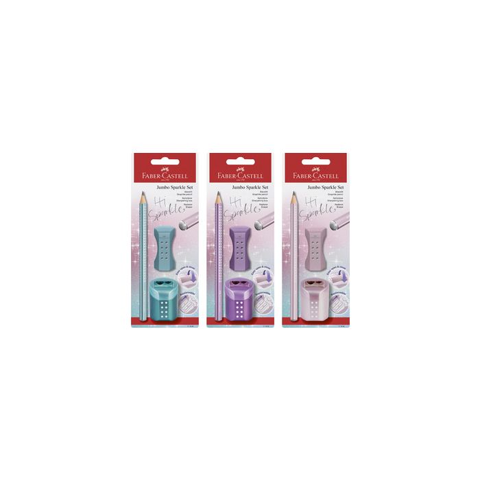 FABER-CASTELL Kit d'écriture Jumbo GRIP SPARKLE, assorti contenu: 1 x Crayon de papier Jumbo GRIP SPARKLE 1 x Gomme RollOn 1 x Taille-crayon double RollOn (111682)