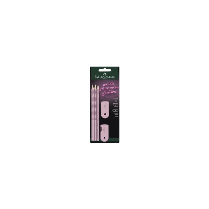 FABER-CASTELL Kit d'écriture SLEEVE, rose contenu: 3 x crayon de papier GRIP 2001 degré de dureté B 1 x gomme SLEEVE 1 x taille-crayon SLEEVE (217084)