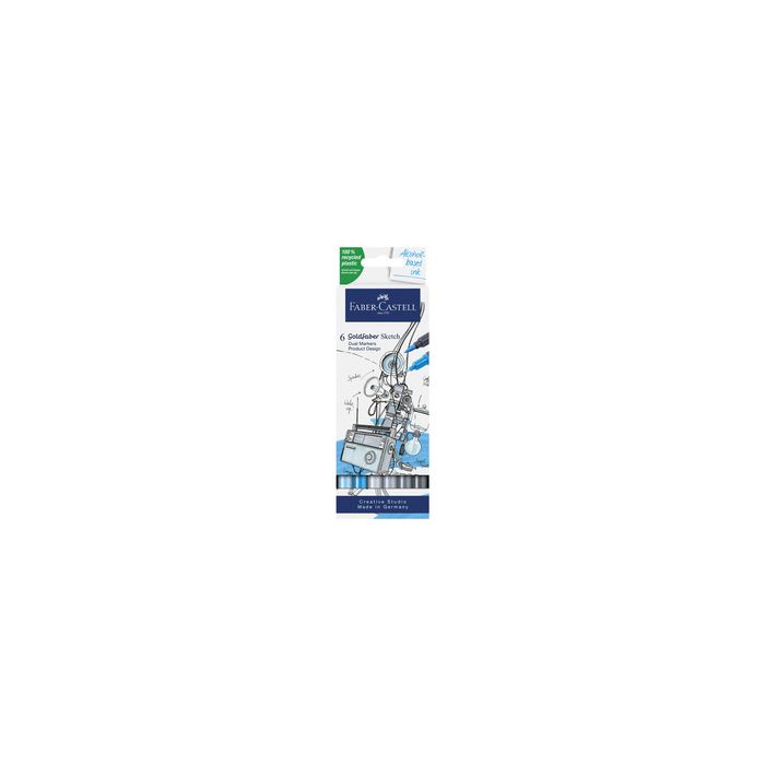 FABER-CASTELL Marqueur Sketch GOLDFABER, étui de 6 design marqueur à base d'alcool avec deux pointes, l'encre sèche vite, indélébile et résistant à l'eau, une application répétée permet de réaliser ombres et profondeur contenu: 6 marqueurs (164806)