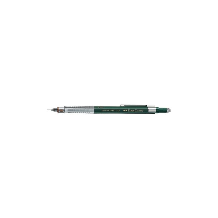 FABER-CASTELL Porte-mines TK-Fine Vario L, vert épaisseur de mine: 0,5 mm, gomme extra longue rétractable, grip métallique, fenêtre de degré de dureté réglable (135500)