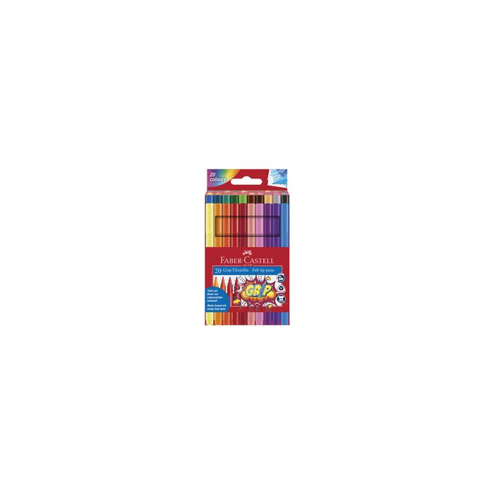 FABER-CASTELL Stylo feutre GRIP COLOUR MARKER, étui de 20 Zone Grip à picots pour une prise en main sûre, lavable sur la plupart des textiles, encre à base d'eau avec colorants alimentaires, pointe du feutre non enfonçable jusqu'à 3 kg contenu: 20 pièces (155320) assorti dans les couleurs: jaune, orange clair, rouge clair,rouge foncé, couleur chair clair, rose, violet clair, violetfoncé, bleu clair, bleu foncé, turquoise, vert foncé, vert prairie, vert oxyde de chrome, brun blair, brun foncé, or, argent et noir