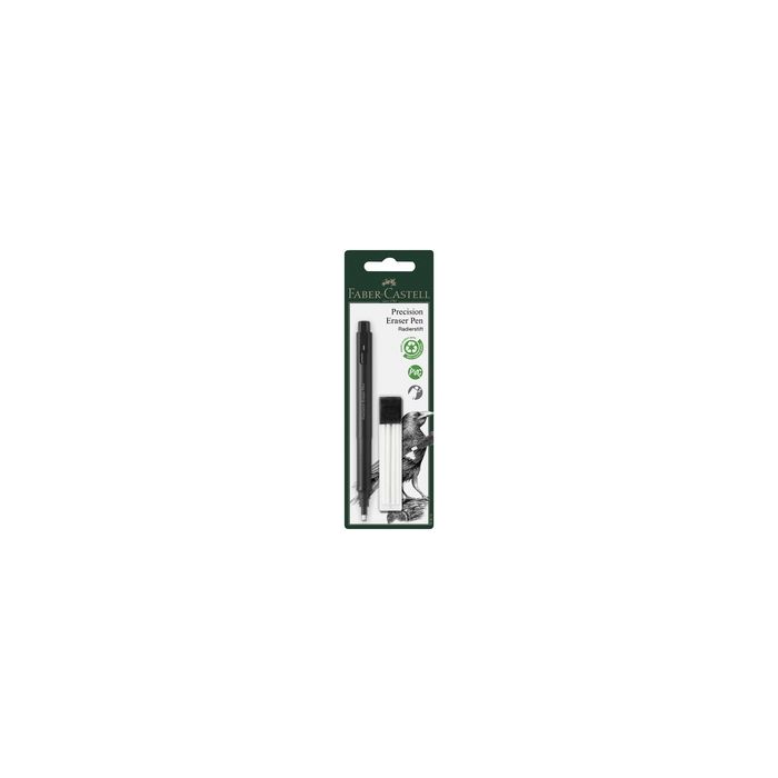 FABER-CASTELL Stylo-gomme PRECISION ERASER PEN, blister rétractable, pointe dans bague métal, efface les traits de crayon de papier et de couleur sans laisser de traces, efface avec précision, incl. gomme de rechange contenu: 1 stylo-gomme + gommes de recharge (185610)