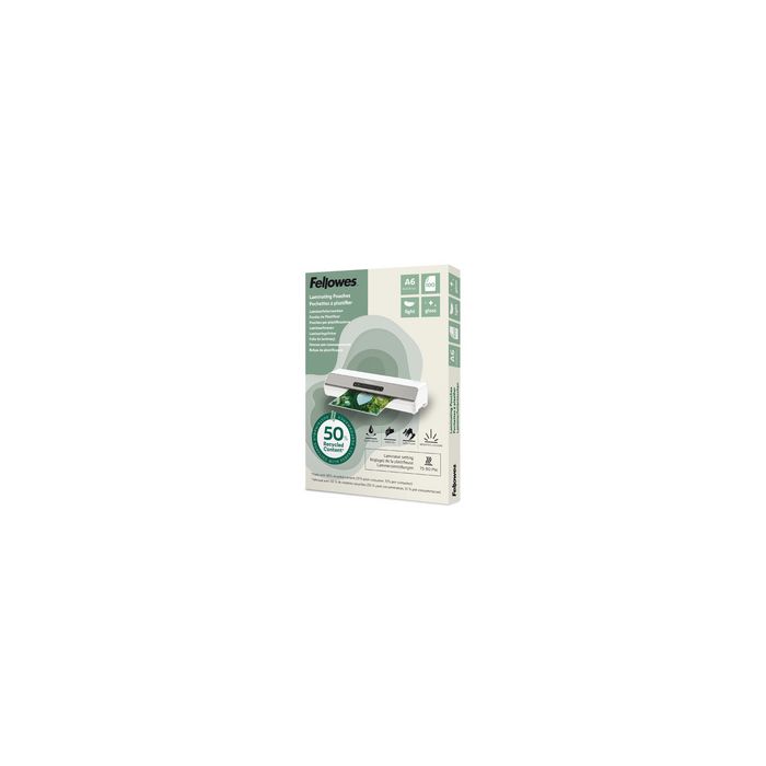 Fellowes Pochette de plastification, A6, 160 microns brillant, fabriqué avec 50% de matériaux recyclés, version légère à utiliser avec un réglage de plastification de 75/80microns, 2 x 75/80 microns, dimensions: (L)111 x (H)154 mm contenu: 100 pièces (100143441)